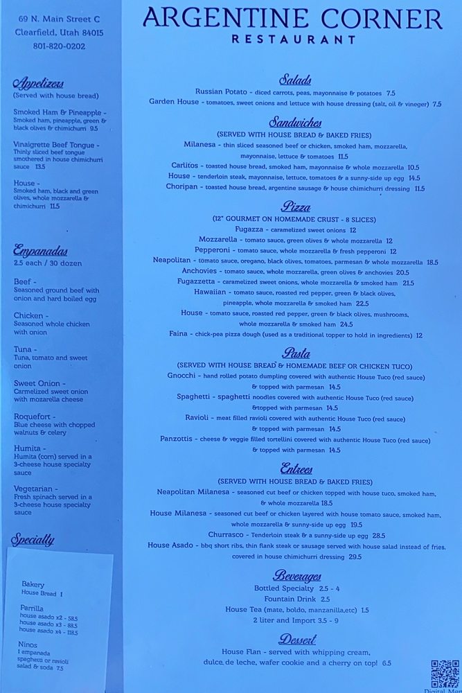 Introducing Argentine Corner, a casual dining spot in Clearfield, UT that offers a wide variety of Argentine cuisine. From slow-cooked beef on gnocchi to Milanesa sandwiches, their menu has something for everyone. With an emphasis on fresh, homemade dishes, Argentine Corner prides itself on its authentic flavors and welcoming atmosphere. Customers rave about the friendly staff, clean dining area, and the option for outdoor seating. While the seats may not be the most comfortable, the delicious food more than makes up for it. Don't miss out on trying their Yerba Mate tea or ordering some food to cook at home. Argentine Corner is a must-visit destination for those looking to experience traditional Argentine flavors in a warm and inviting setting.